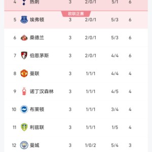 雷速体育9月1日讯 英超第3轮结束了大部分的比赛,目前英超的积分榜上,利物浦唯一三战全胜积9分排名榜首。切尔西两胜一平...