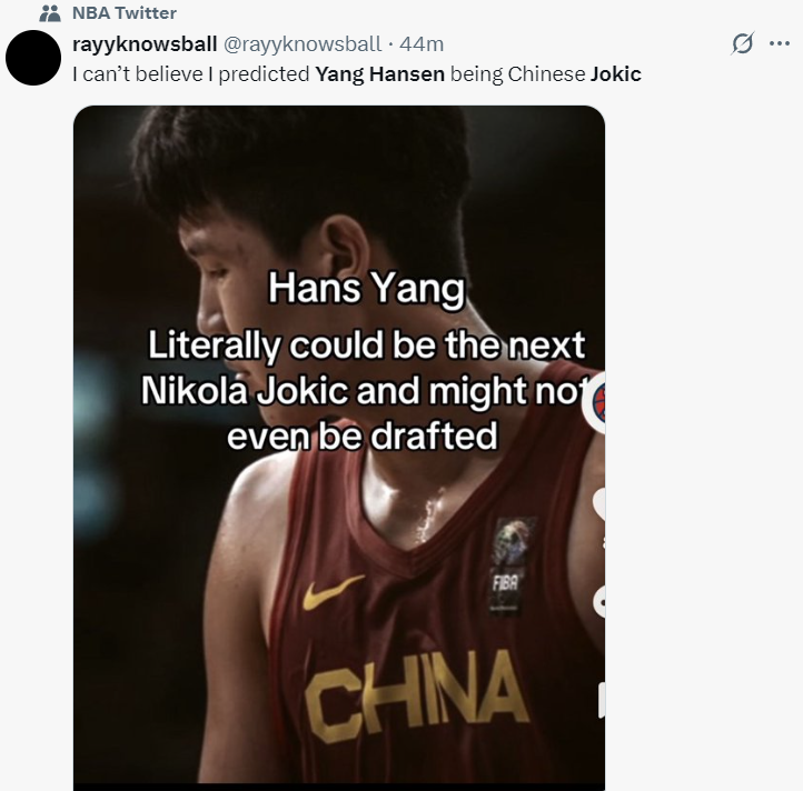 美球迷:我简直不敢相信我预测成功了,杨瀚森真的是约基奇那样的球员。